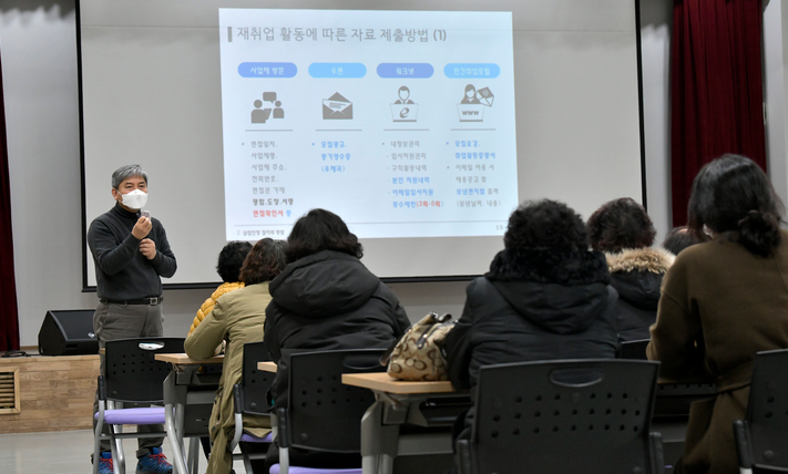 - 신분증 지참하여 거주지 관할 고용센터 방문하여 실업급여 신청자 취업지원 설명회 참석